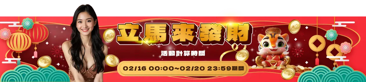 1. 除夕02/16~初四02/20 期間總流水返還0.05%,綁定流水1倍。